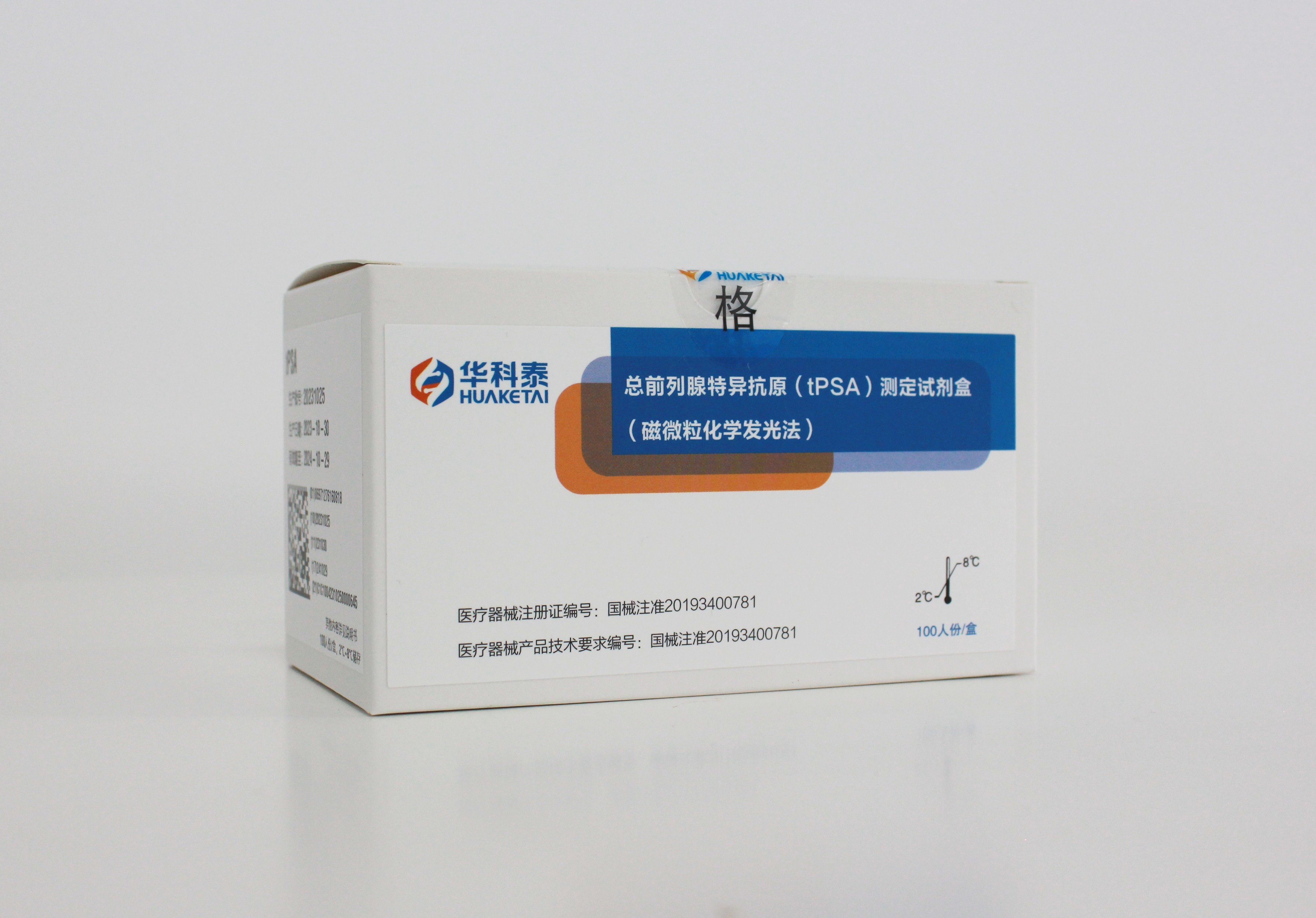 总前列腺特异性抗原(t-PSA)是一种分子量为32KD单链糖蛋白,由前列腺上皮细胞分泌产生,它是一种类似糜蛋白酶的丝氨酸蛋白酶。正常情况下PSA泌入精液,在精囊包的分裂和精液的液化上发挥生理作用。