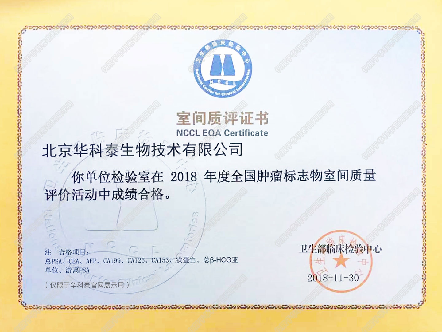 室间质评证书