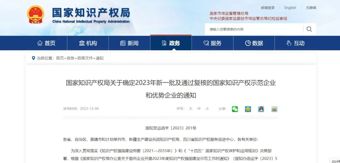 NEWS12月6日,国家知识产权局公布了2023年度国家知识产权示范企业和优势企业名单,kaiyun.com及其子公司凭借自主创新能力和完善的知识产权管理体系,双双入选“国家知识产权优势企业”名单,这也是kaiyun.com继“北京民营企业中小百强”后的又一重大荣誉!